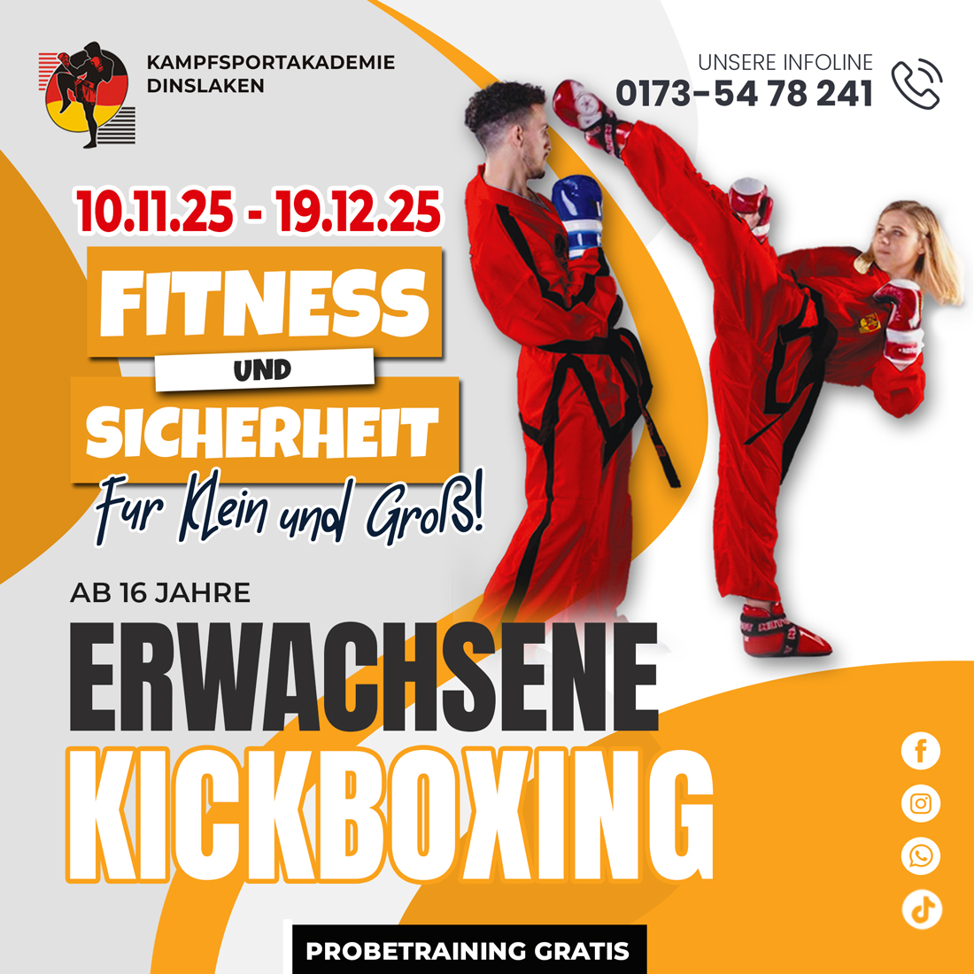 🔹 Kickboxen – Perfekt für alle, die ihre Fitness verbessern und effektive Schlag- und Tritttechniken erlernen möchten. Kickboxen kombiniert Dynamik und Präzision und ist ein großartiges Ganzkörpertraining.