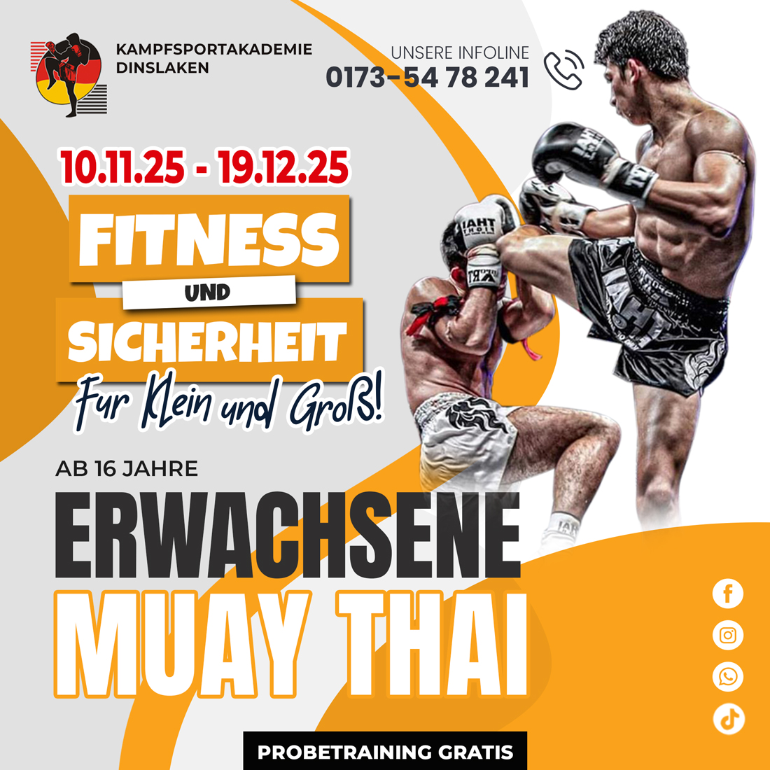 🔹 Muay Thai – Die „Kunst der acht Gliedmaßen“ aus Thailand. Mit Fäusten, Ellbogen, Knien und Tritten entwickelst Du beeindruckende Schlagkraft und lernst, Dich effektiv zu verteidigen.