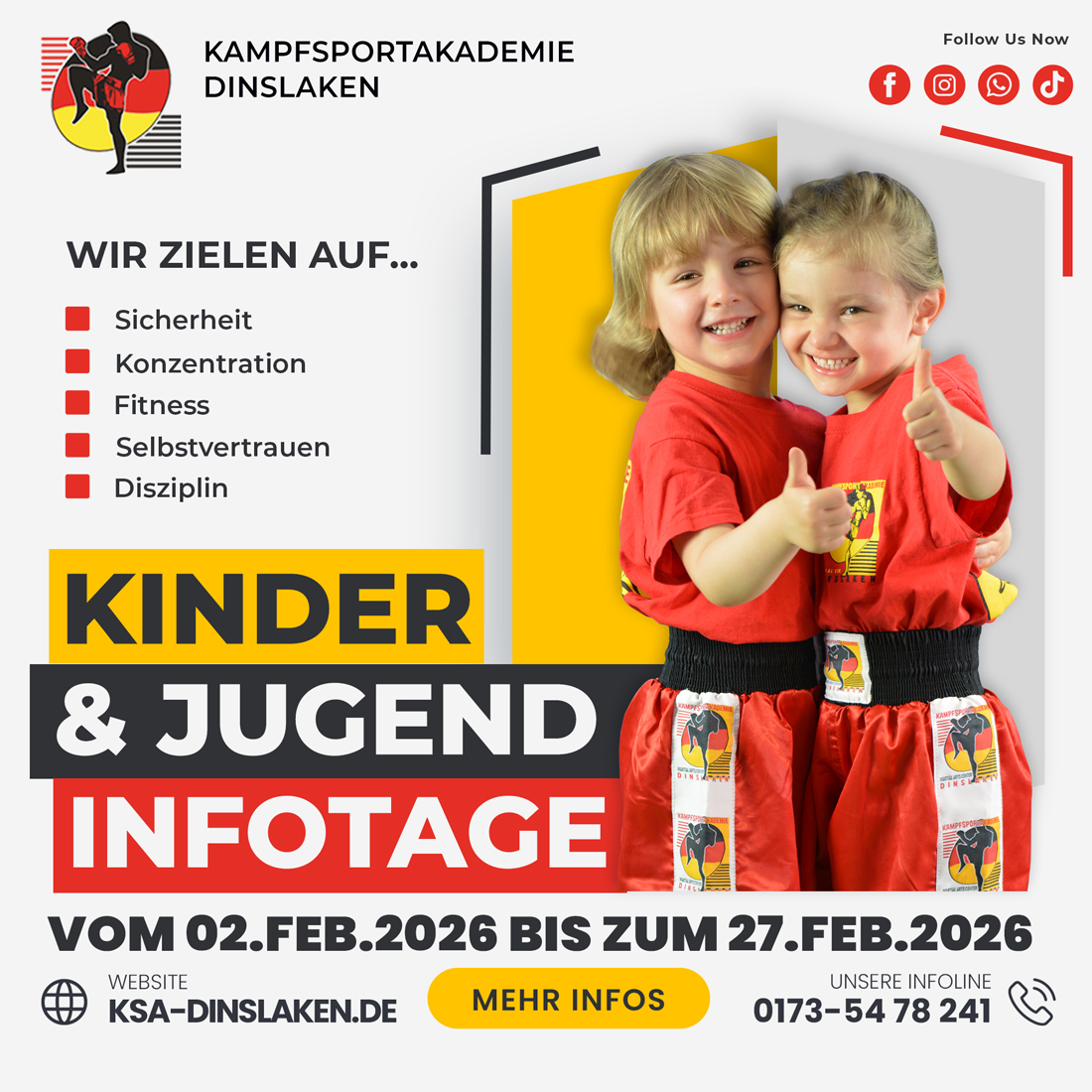 Nicht zu Unrecht haben viele Eltern das Gefühl, dass die Welt – auch für ihre Kinder – immer gefährlicher wird. Berichte über Mobbing von älteren Kindern oder Gleichaltrigen nehmen gerade in den Sozialen Medien stetig zu. Zurück bleibt ein Gefühl der Hilflosigkeit – bei Eltern und Kindern. Genau hier setzen die speziell für Kinder und Jugendlichen konzipierten Selbstverteidigungskonzepte der Kampfsportakademie Dinslaken an.